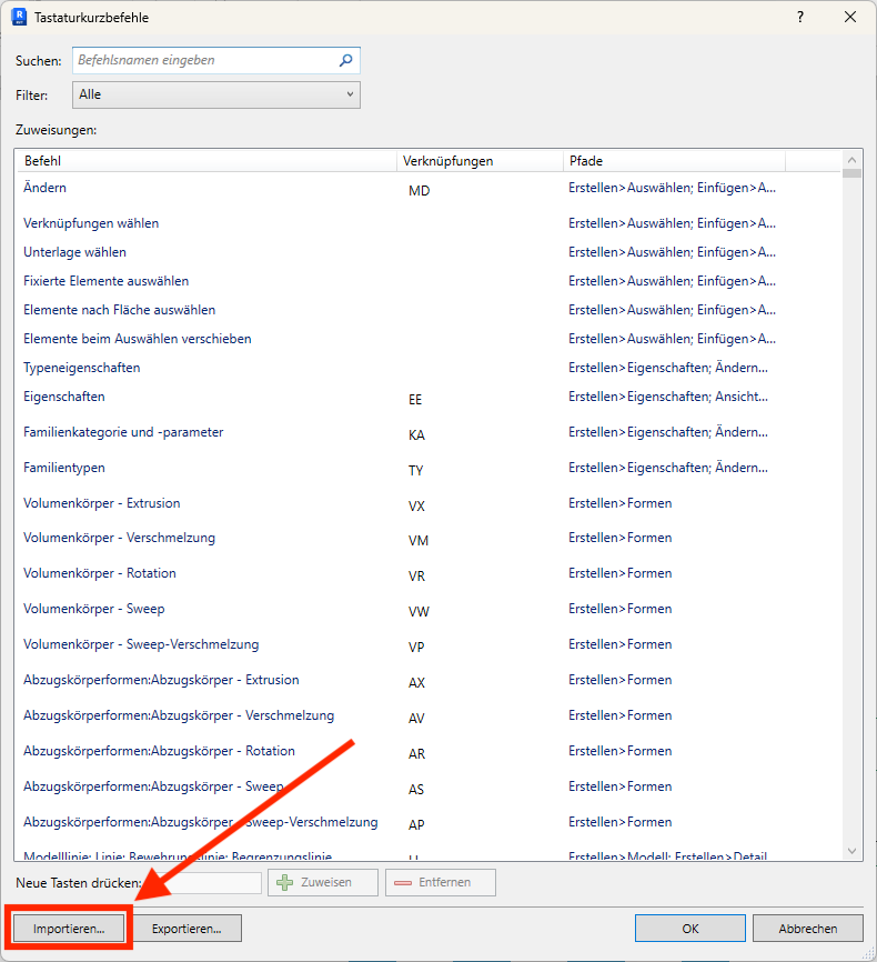 Am Ende des Newsletters findest du außerdem eine Anleitung, wie du die deutschen Shortcuts in Revit importieren kannst.