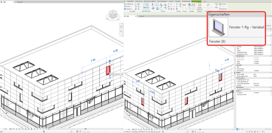 Alle Fenster, Türen oder andere Bauteile eines Typs gleichzeitig markieren, um Eigenschaften anzupassen, Positionen zu überprüfen oder Änderungen zentral vorzunehmen.